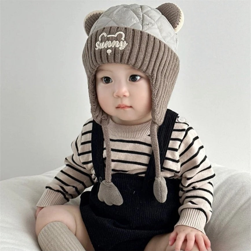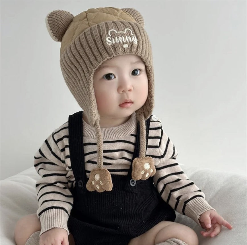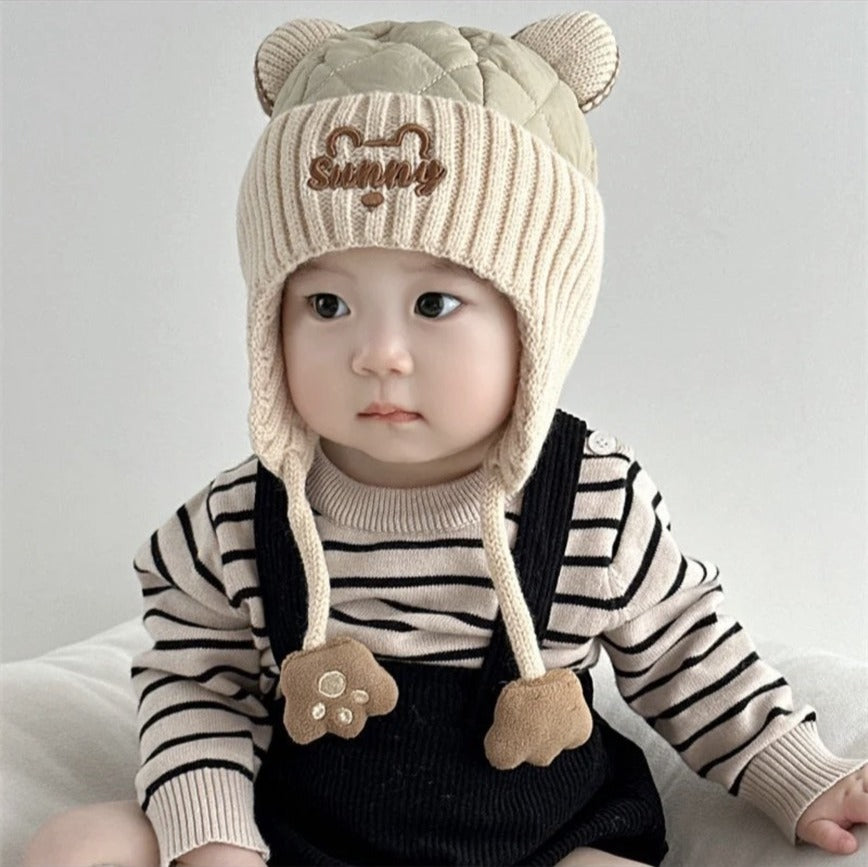 這款 立體熊耳護耳棉質保暖帽,選用親膚棉質搭配鋪棉設計,柔軟細緻、不刺激肌膚,保暖同時兼顧透氣性,給寶寶最安心的呵護。加長護耳設計能完整包覆頭部與耳朵,冷風不易灌入,外出散步、坐車都很實用。可愛熊耳造型搭配精緻刺繡字樣,質感滿分,拍照怎麼拍都好看。下方繩帶附萌感小熊掌,不只造型加分,也能防止帽子滑落。多款溫柔色系,男女寶都適合。